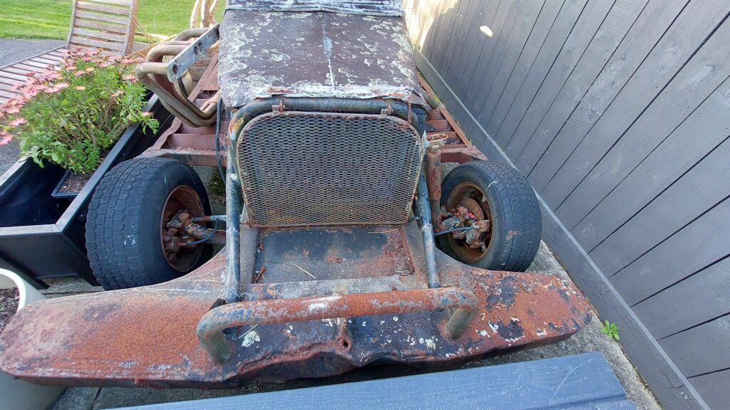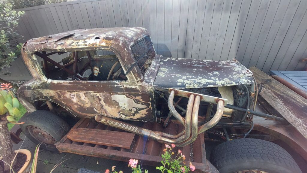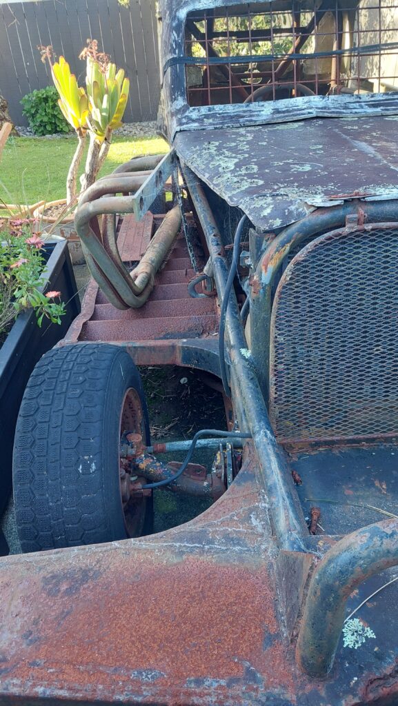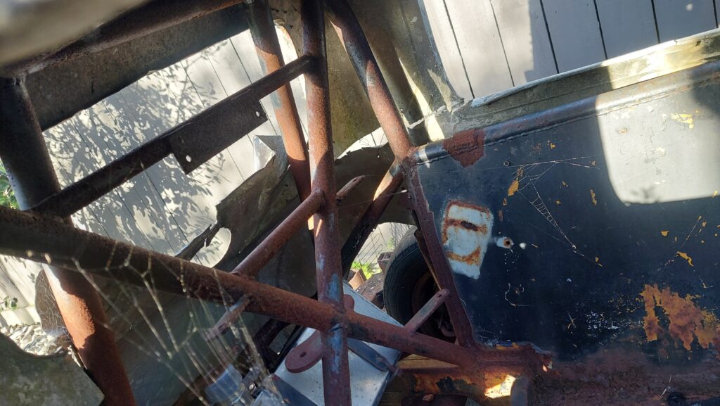 OPTION 2. Rolling chassis – Original Engine, Disassembled 267 Chev Ex Mount Superstock engine ( looks to have some good bits , roller rockers – no inlet manifold or carb) and Standard stock Chev 267 complete/ Bellhousing and clutch as removed with 10mm firewall plate ( rear engine bell housing holes need helicoiling or just keep as engine spares. Comes with engine lifter and what spares came with the car.